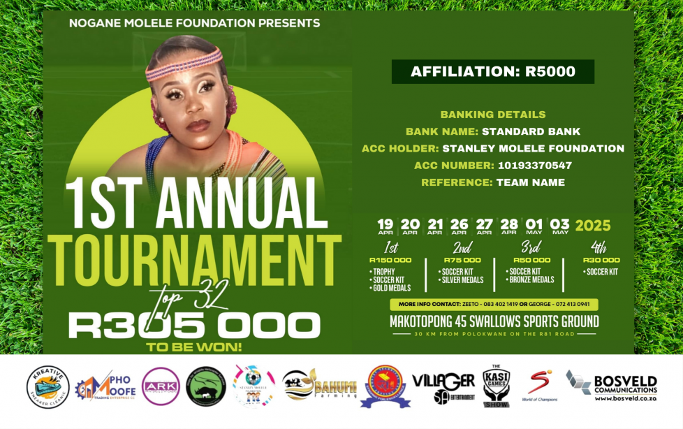 The Stanley Nogane Molele Foundation is thrilled to host the Hammanskraal Soccer Tournament, where passion, skill, and teamwork come together for an unforgettable competition! 🔥⚡